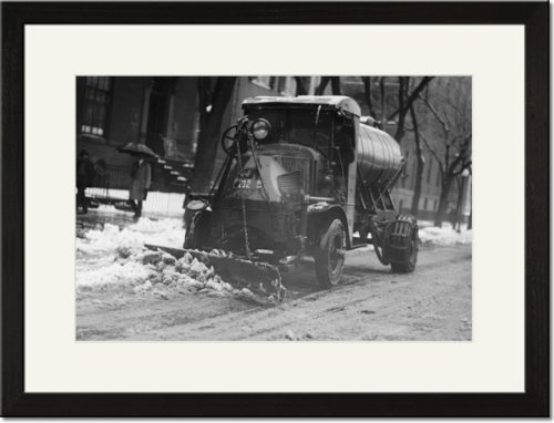 Black Framed/Matted Print 17x23, Tank Truck with Snow Plow Cleans the Streets Review