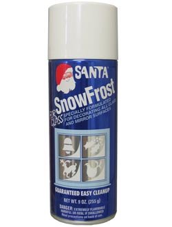 13 oz (368 g) Aerosol Spray On Snow can is filled with Artificial Spray Snow For Windows for trees, wreaths, and window decoration. For use, just about anywhere. This Window Christmas Snow Spray will brighten any home, business or car for the holiday season. The spray on snow is easy to spray on most surfaces. This Artificial Spray Snow For Windows is also easy to clean up with a household glass cleaner. Use the Christmas Snow Spray to highlight the tips of evergreen branches, accent wreaths, highlight centerpieces, decorate windows or mirrors. The Santa Snow Spray can also be used in many craft and school projects.